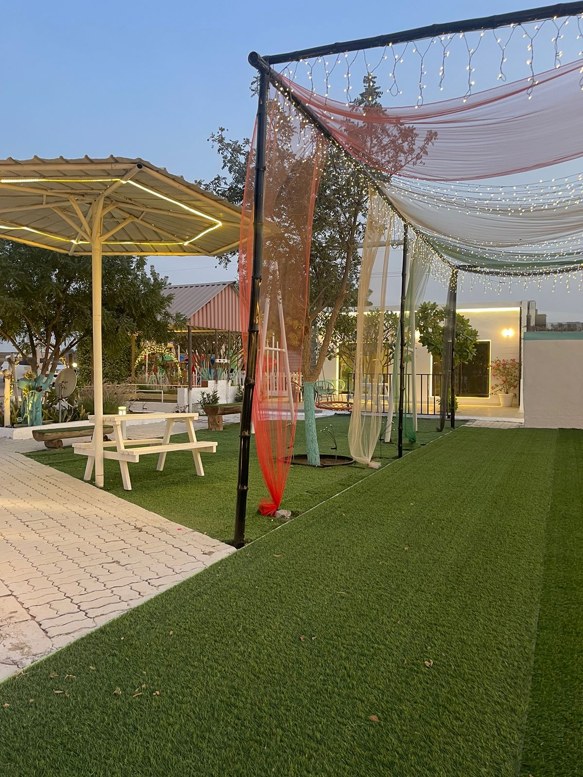 For families with children, the farmhouse features a dedicated kids’ play area equipped with swings, slides, and other exciting attractions, ensuring hours of fun and entertainment. Adjacent to the play area is a delightful barbecue section, where guests can enjoy alfresco dining and cook up delicious meals in the fresh air, perfect for social gatherings and family cookouts.
