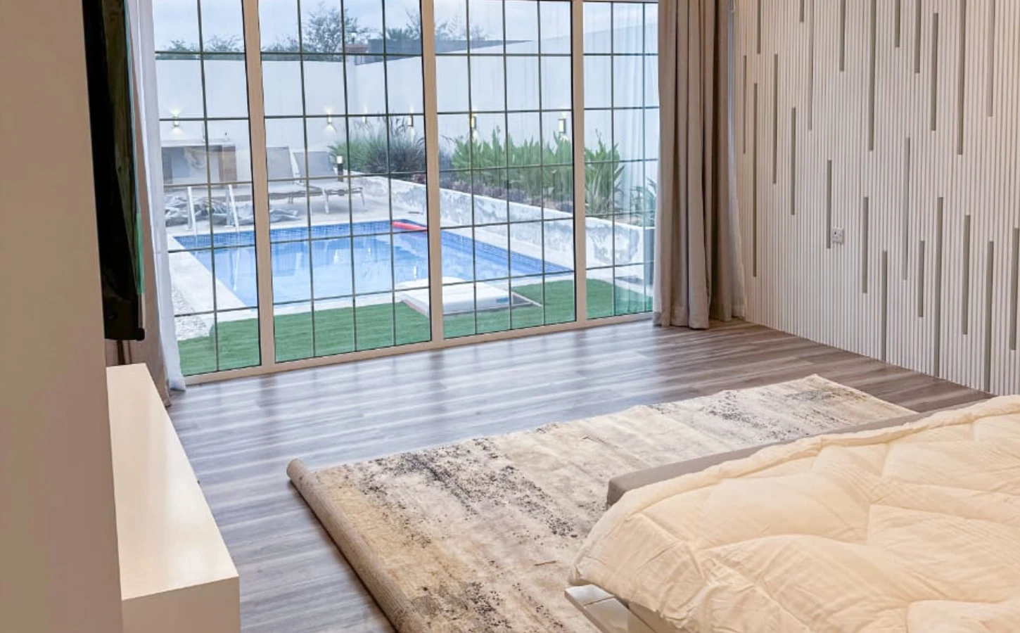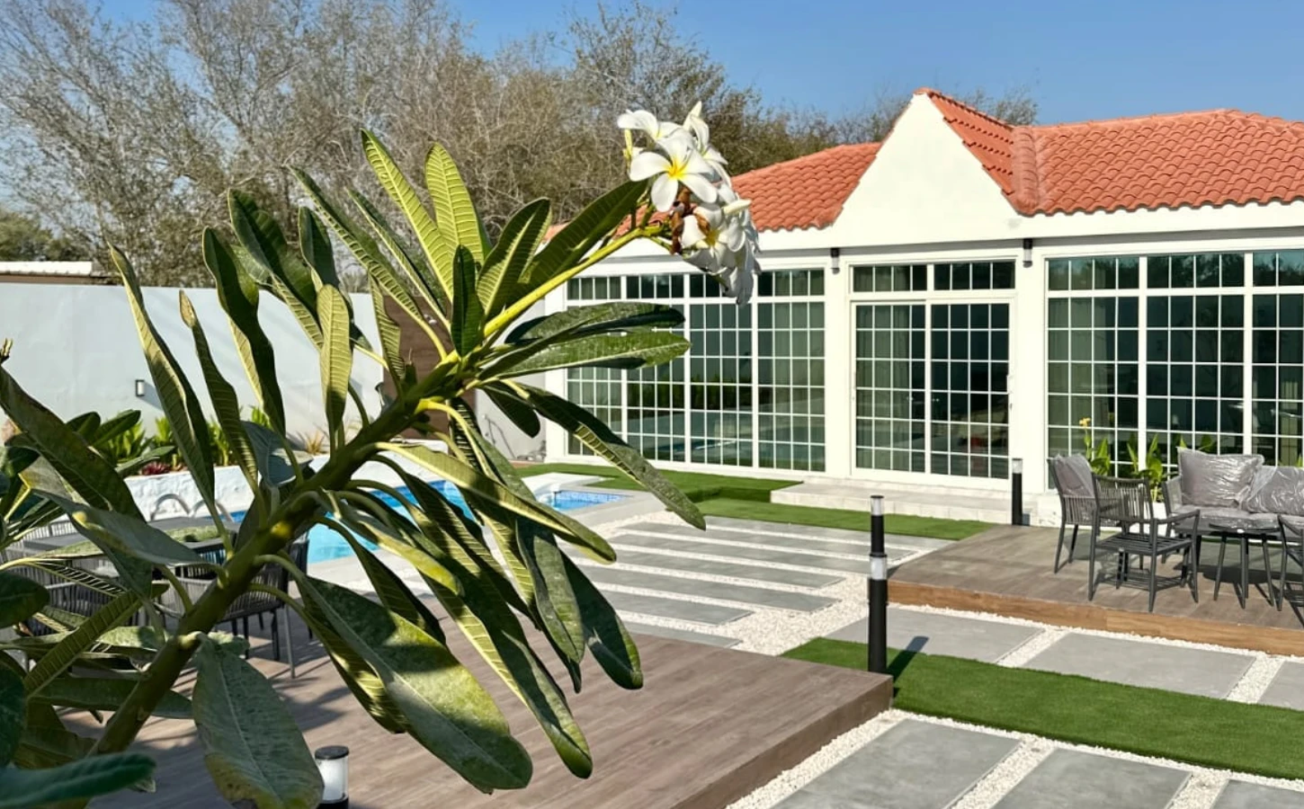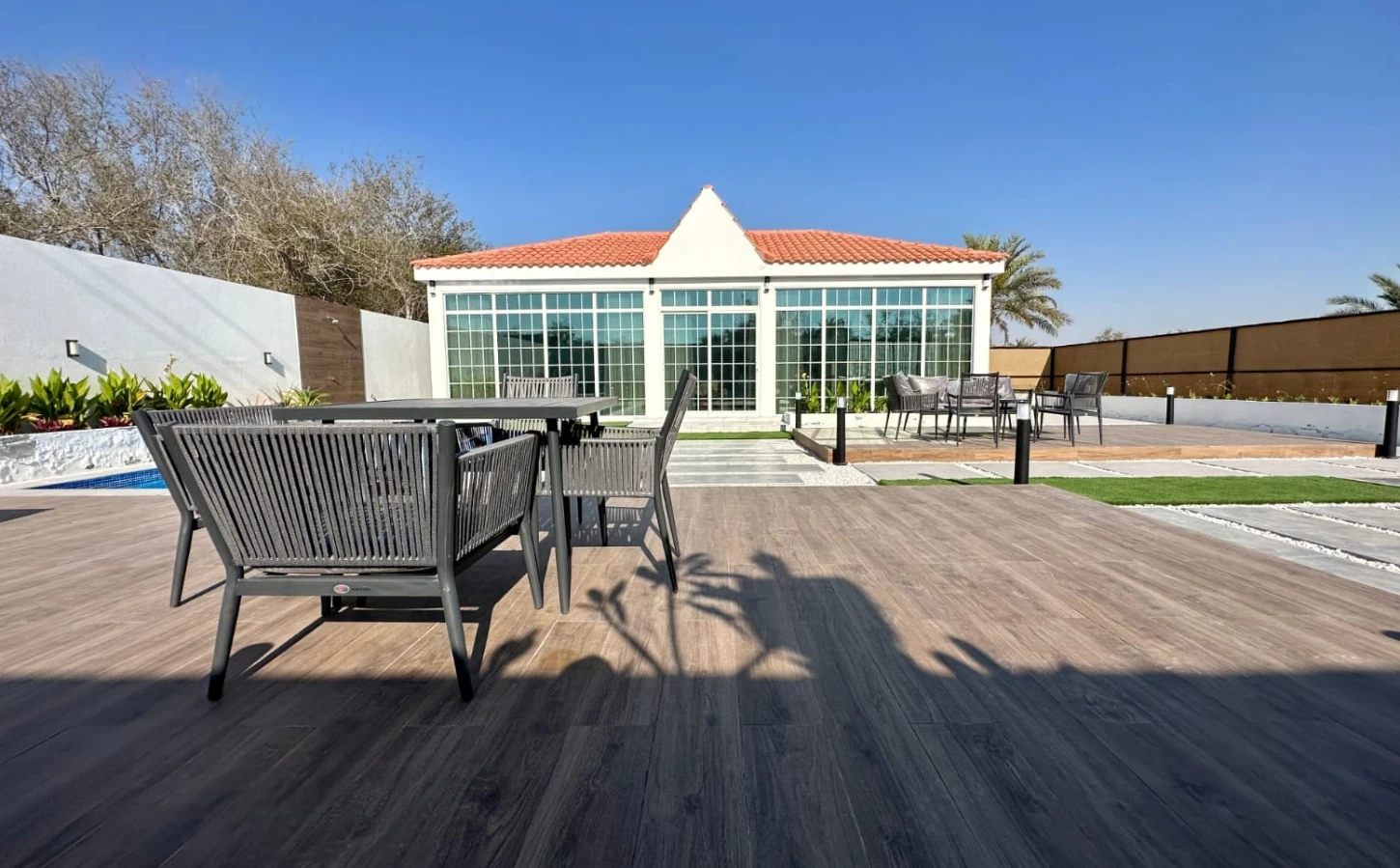 This charming farmhouse in Abu Dhabi , AL Shahama area , offers a peaceful retreat with a beautiful garden view. The spacious interior features large windows, bringing the outdoors inside