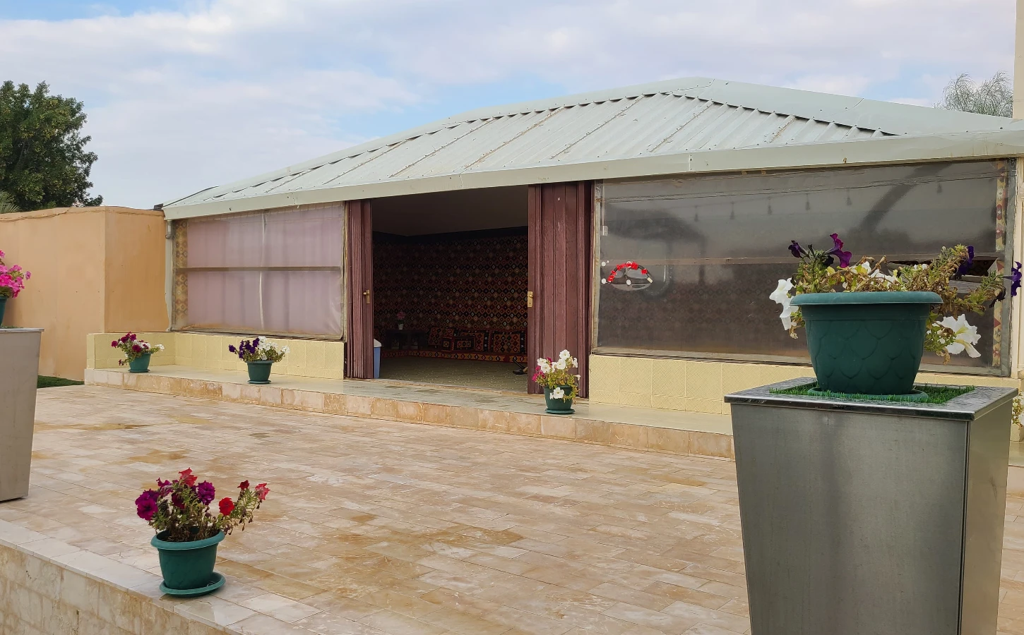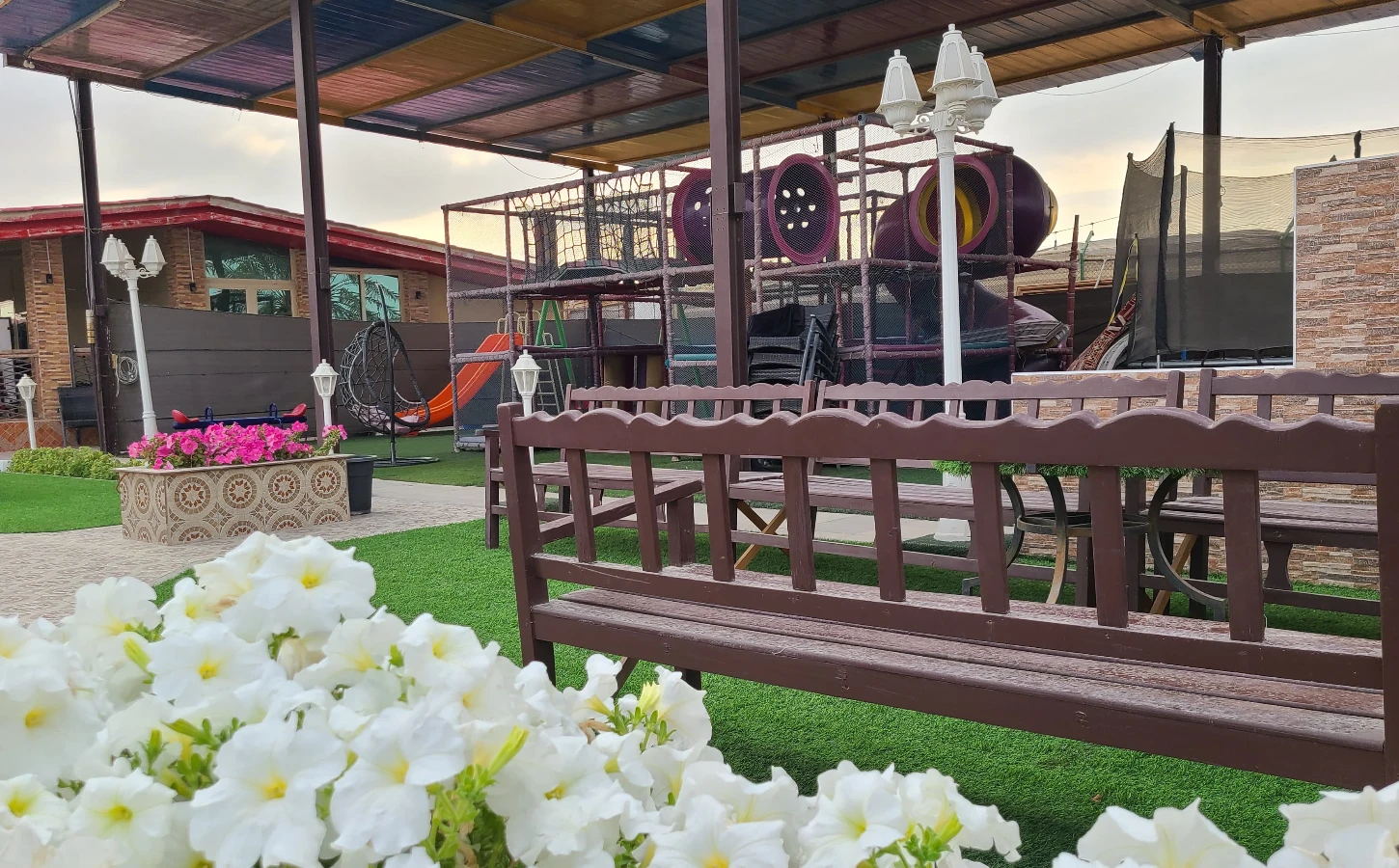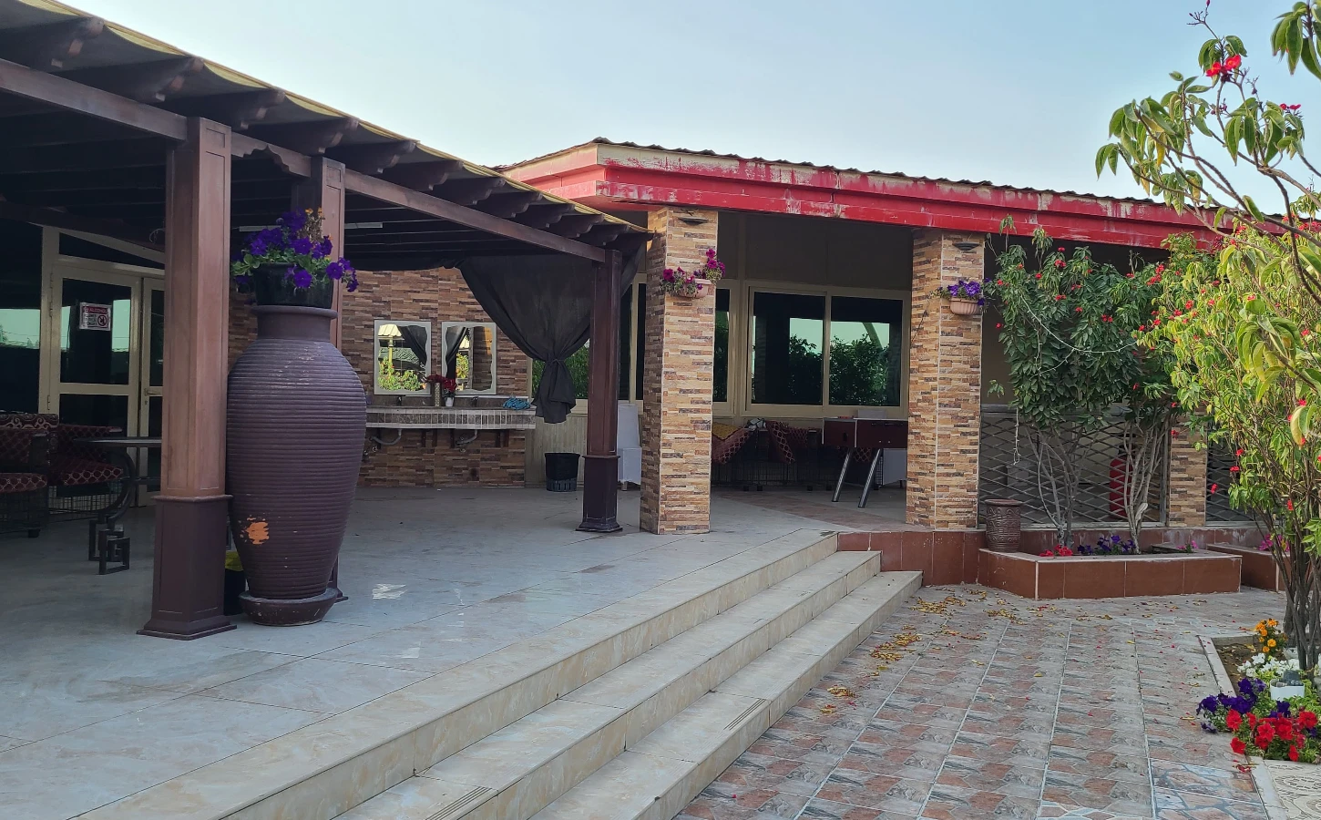Optional Services: Located in the tranquil Al Awir area of Dubai, this farmhouse provides an ideal retreat for families and friends. The property features a spacious outdoor seating area, a well-equipped barbecue section, a luxury tent for a unique glamping experience, and a swimming pool with sections for both adults and children.