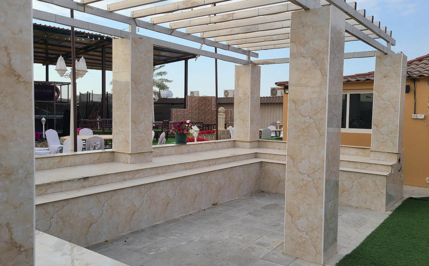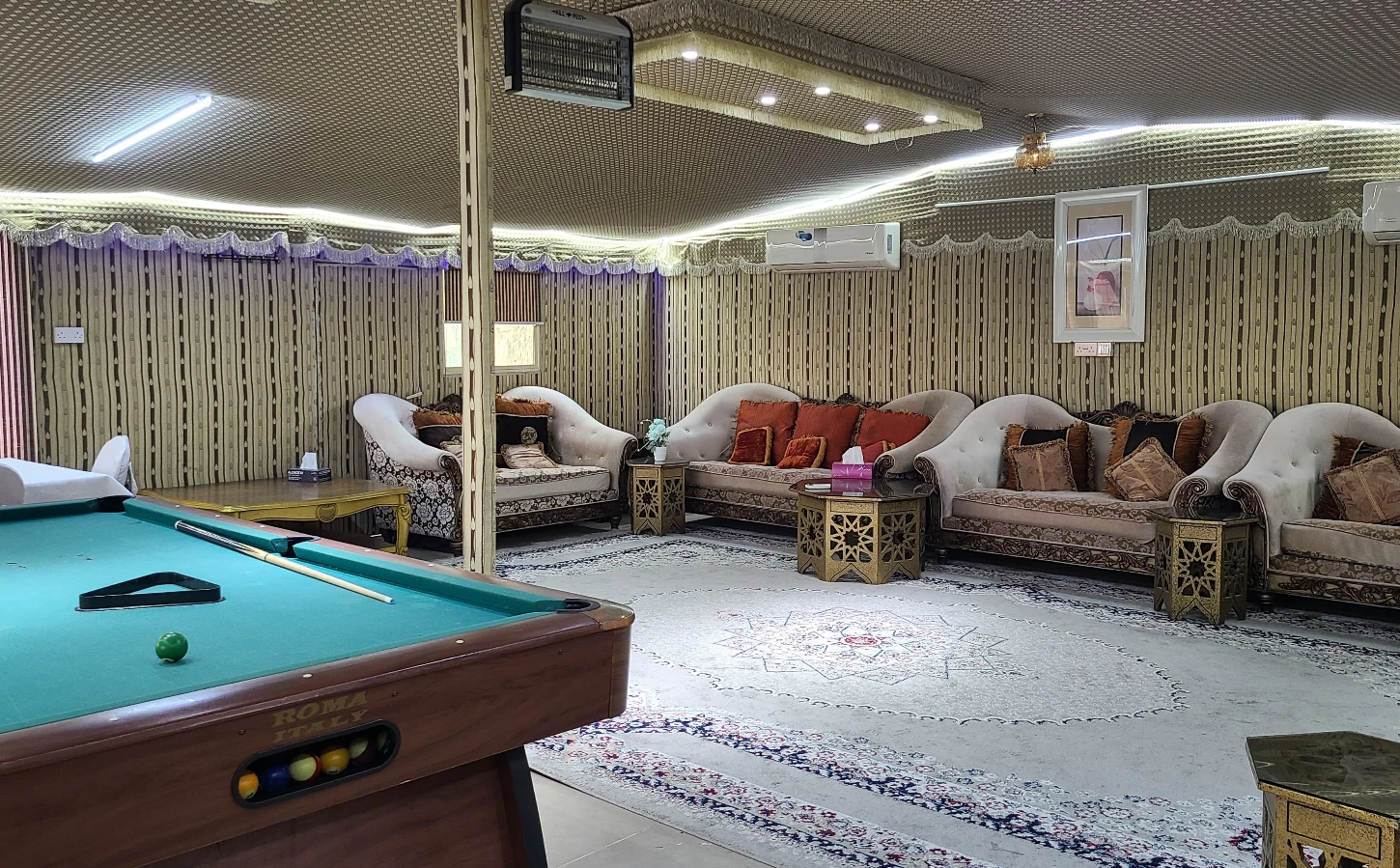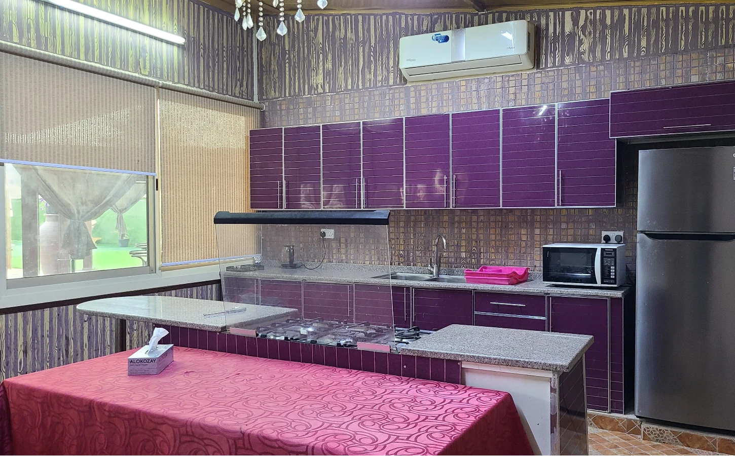 Optional Services: Located in the tranquil Al Awir area of Dubai, this farmhouse provides an ideal retreat for families and friends. The property features a spacious outdoor seating area, a well-equipped barbecue section, a luxury tent for a unique glamping experience, and a swimming pool with sections for both adults and children.
